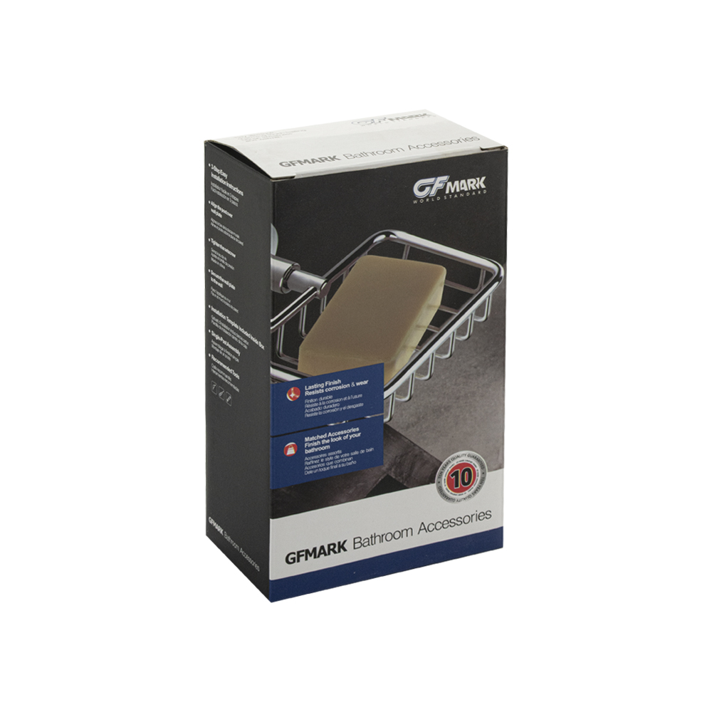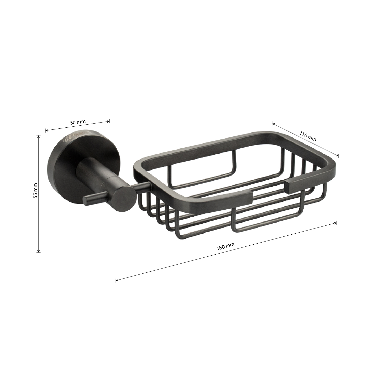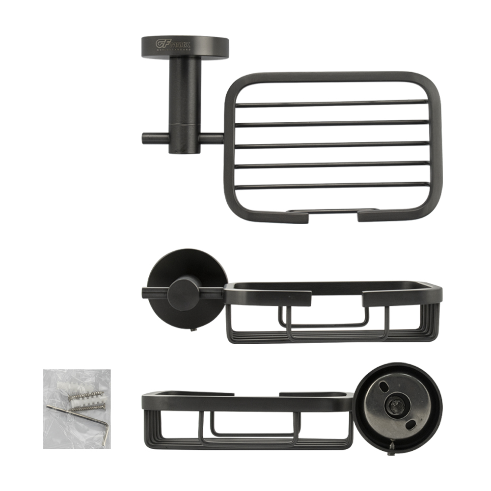Мыльница подвесная, настенная, прямоугольной формы на основании - решетка. Материал изготовления — нержавеющая сталь. Имеет специальное графитовое, матовое покрытие, которое защищает изделие от влаги и придает ему безупречный стильный вид и долговечность. Сетчатый каркас не позволяет влаге скапливаться, поэтому мыло долгое время сохраняет свою форму. Идеально подойдет не только для ванной, но и для кухни. Изделие крепится к стене с помощью дюбелей и саморезов (входят в комплект). Габаритные размеры: ширина 180 мм, глубина 110 мм, высота 55 мм, диаметр посадочного седла 50 мм. Вес - 0,397 кг, объём - 0,00150 м3.